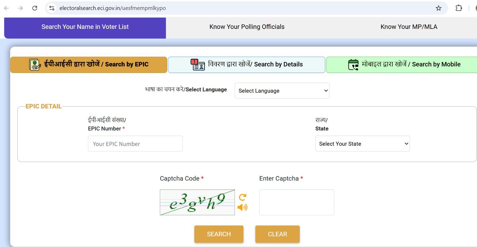 - EPIC नंबर या व्यक्तिगत विवरण का उपयोग करके खोजें अपना नाम।